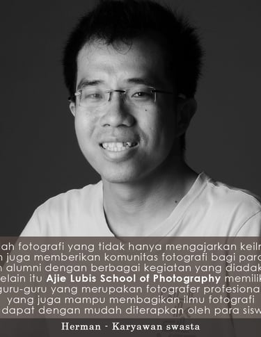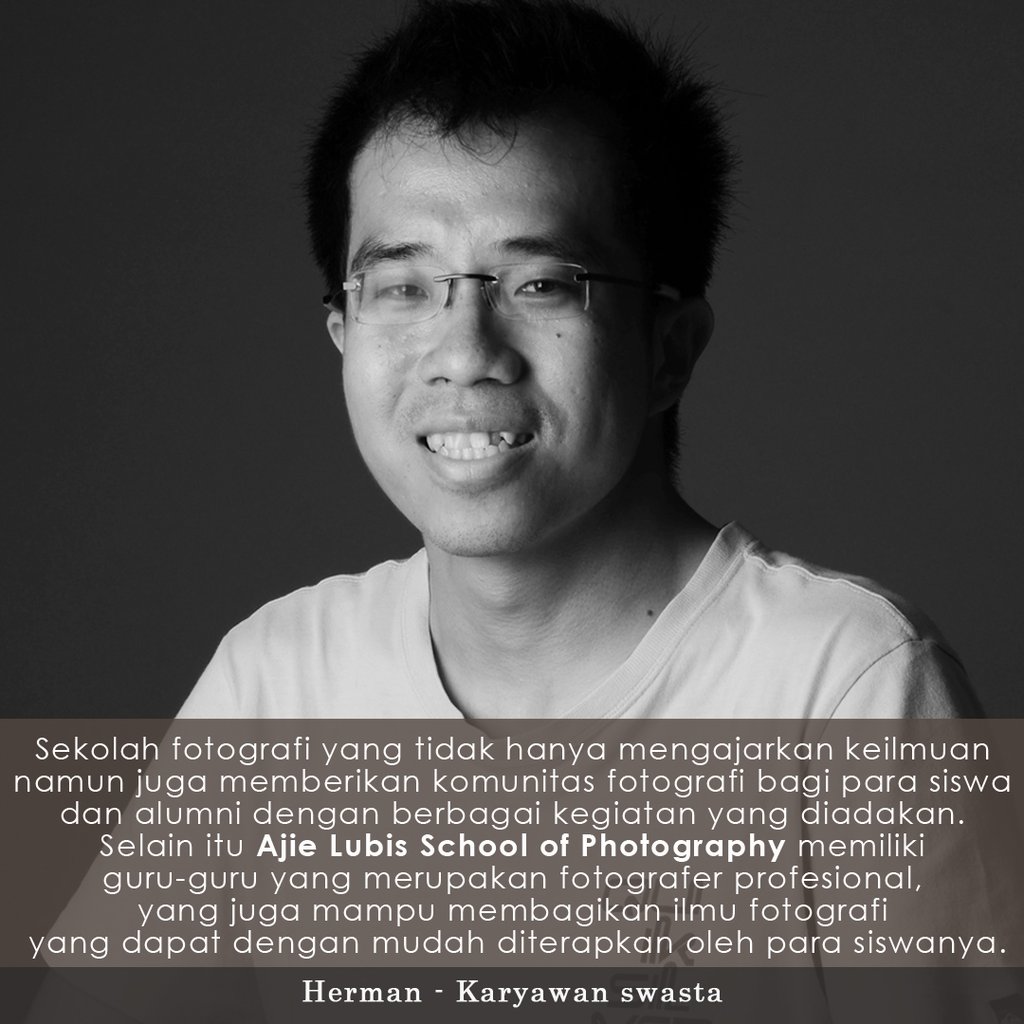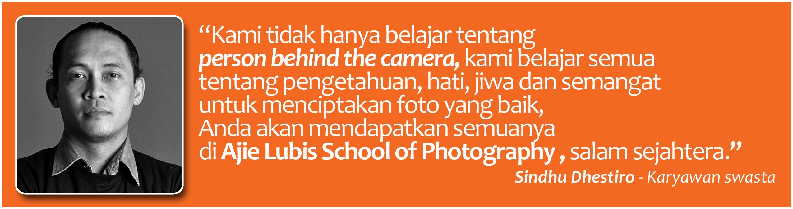 ”Kami tidak hanya belajar tentang man behind the camera, kami juga belajar tentang pengetahuan, hati, jiwa, dan semangat untuk membuat foto yang bagus. Kamu akan dapatkan semuanya itu di Ajie Lubis School of Photography, salam.”