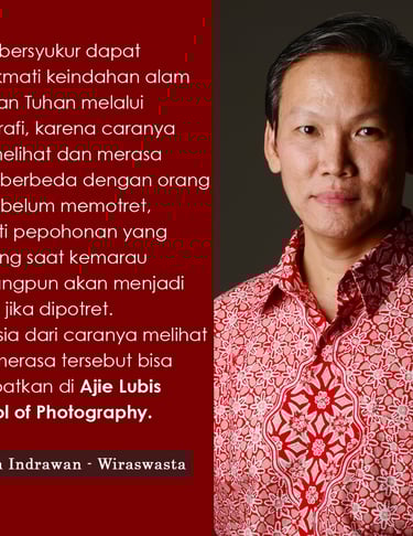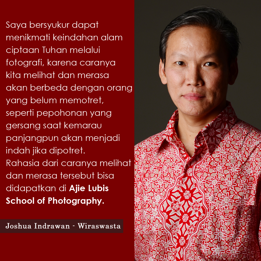 ”Saya bersyukur dapat menikmati keindahan alam ciptaan Tuhan melalui fotografi, karena cara kita melihat dan merasa akan berbeda dengan orang yang belum memotret. Nah rahasianya bisa didapatkan di Ajie Lubis School of Photography.”