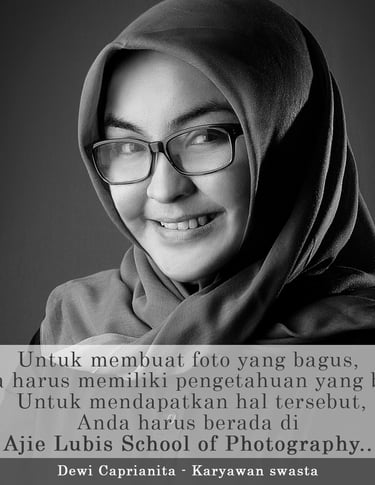 ”Untuk membuat foto yang baik, Anda harus memiliki pengetahuan yang baik juga. Untuk menemukan pengetahuan yang baik, Anda harus belajar di Ajie Lubis School of Photography.”