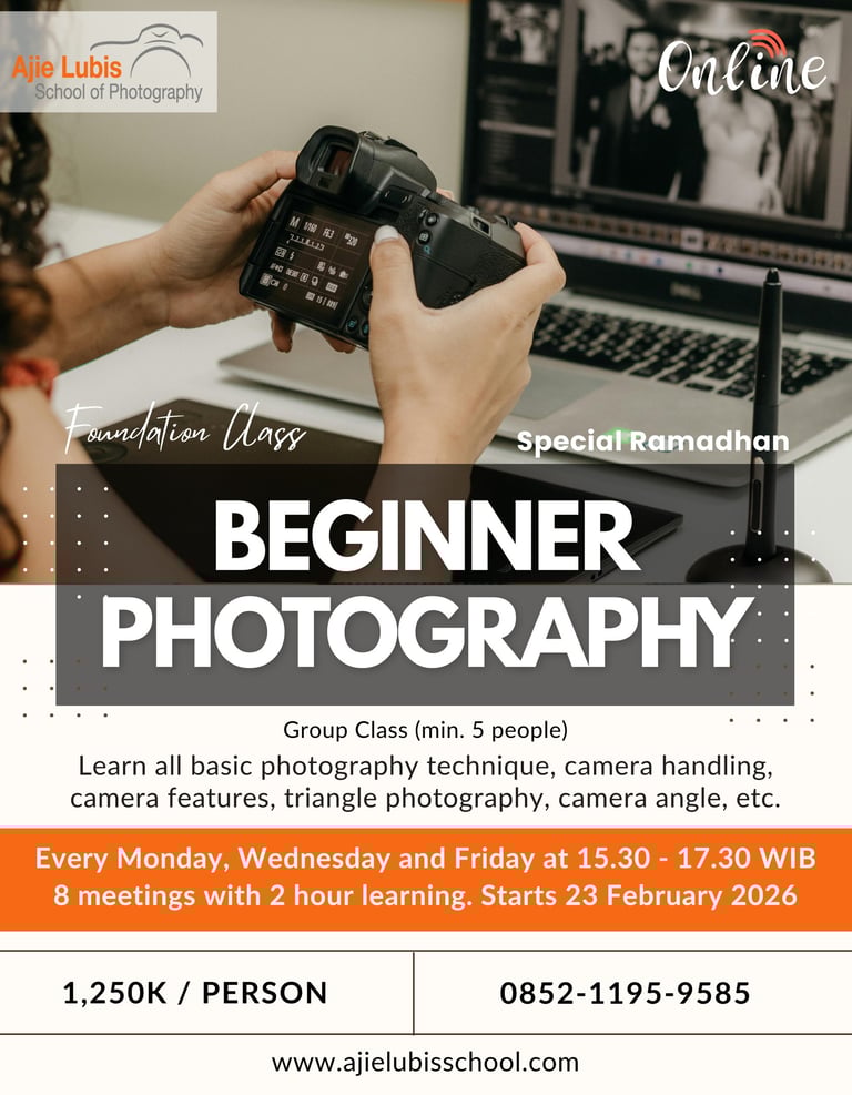 Tingkatkan keterampilan fotografi Anda bersama kami di Ajie Lubis School of Photography. Bergabunglah sekarang!